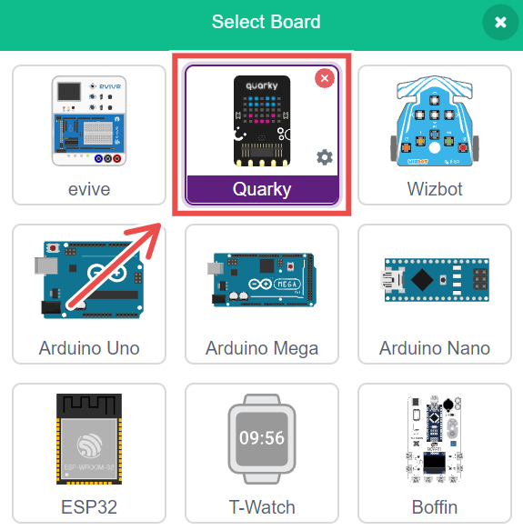 1.2 Open PictoBlox and select the Quarky board.