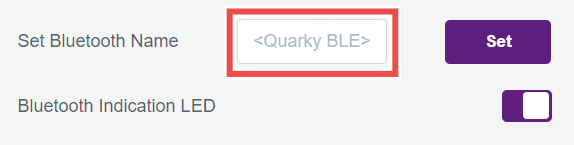 4.2.1 On powering ON, Quarky shows its Bluetooth connectivity status through blue/green color on the bottom right LED of the display (BLUE: Bluetooth disconnected, GREEN: Bluetooth connected). Users can turn off this indicator using the toggle button to the right of the Bluetooth Indication LED option.