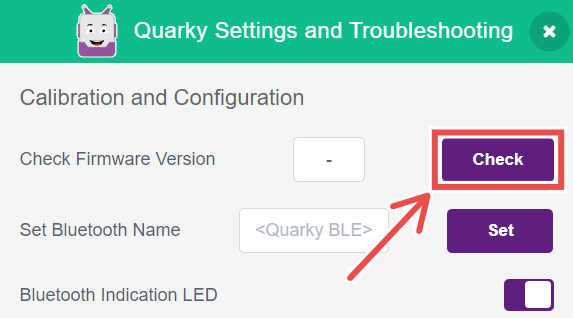 13.3 In the Quarky settings, click on the Check button to check the firmware version.