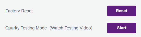 In case the user wishes to reset the configurations set through the Quarky settings, they can do so by clicking on the Factory Reset button which will delete all the saved Bluetooth name, pulse width, touch threshold, etc. from the board without having to erase the flash which achieves the same.