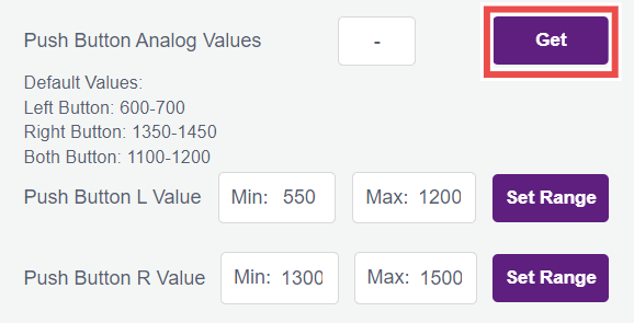 4.9.3 The analog values may differ between boards and the user may wish to change this range for L and R push buttons, and he can do the same using the other two options below the analog values.