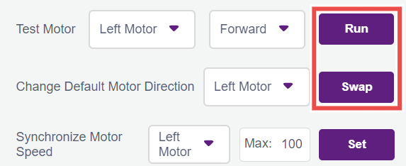 4.3.2 Now, to change the direction of the incorrectly configured motor, select it in the dropdown of the Change Default Motor Direction option & click the swap button. Now you can again run the motor using the Test Motor option, and you will find the direction to be corrected.
