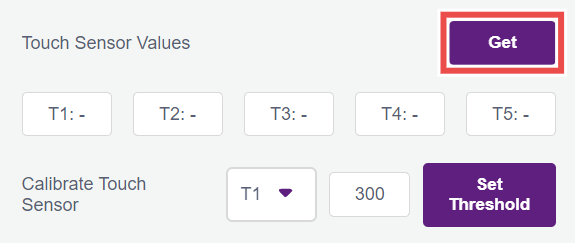 4.8.1 You can check if the touchpads on Quarky are working properly using the Get button beside Touch Sensor Values, this will start filling the T1, T2, etc. fields with the analog values of the touch pins that are being communicated to PictoBlox by Quarky.