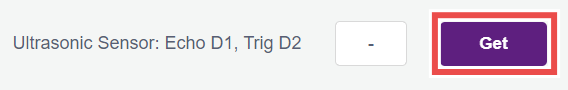 4.12.1 You can validate the proper functioning of your Ultrasonic sensor by connecting the echo and trig pins of your ultrasonic sensor to D1 and D2 pins, respectively. On pressing the Get button, you will continuously get the distance measured by the ultrasonic sensor if the sensor is working correctly.
