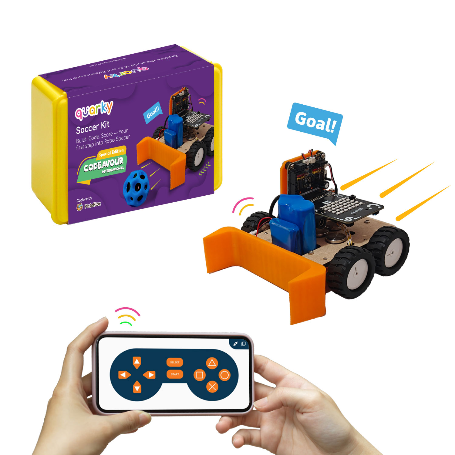 Take your robotics journey to the next level — learn, code, and compete with the official Codeavour Robo Soccer Complete Kit!